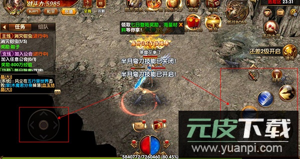 2、通过屏幕左侧的虚拟摇杆控制角色移动,右侧按键则用于释放技能与发动攻击;