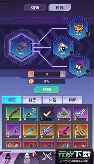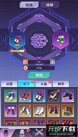 1、主界面的灵能坊建筑内设有灵器之屋,包含熔炼与转换两个选项;灵器主要分为武器、鞋子、头盔、胸甲四类,每种品质对应不同的星级。