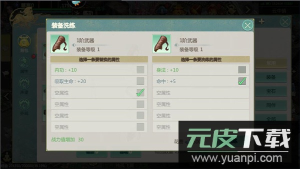 3、选择想要的属性方向点击洗炼,每次操作将消耗一定银两。