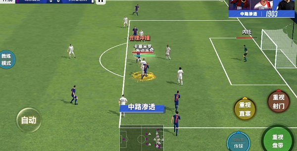 指挥技巧上,当在半场形成压制时,可长按指令进行逼抢,争取在前场完成断球并发动进攻。若对手控球反击,切忌轻易上抢,以免被过掉形成多打少;应等待防守球员落位,迫使对方陷入阵地战,压缩其射门空间。当对手反击难以阻挡时,可考虑使用铲球进行战术破坏,但需注意犯规风险。