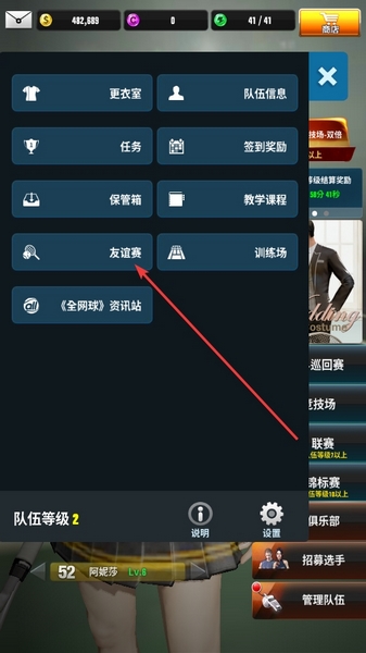 二、在弹出的功能选项栏中选择【友谊赛】功能