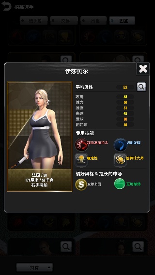 发球上网型球员拥有通用的特色红卡技能“高级切削球”,能有效减少受到的对局影响,在网前有效应对对手打出的“高级小球”;