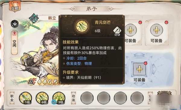 可学习紫色天命属性技能:当队友阵亡或复活时,自身获得护体剑盾效果;若敌人被击败,则重置青元剑芒的冷却时间。