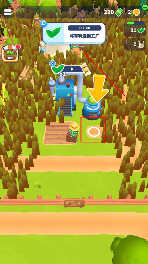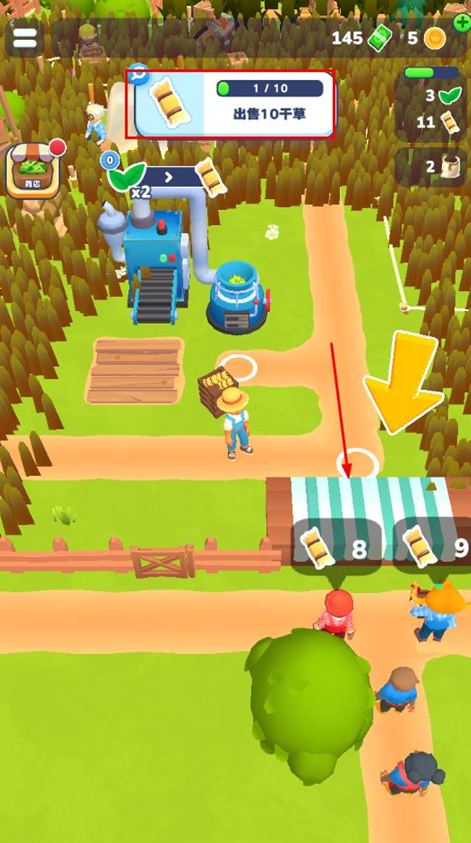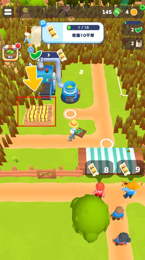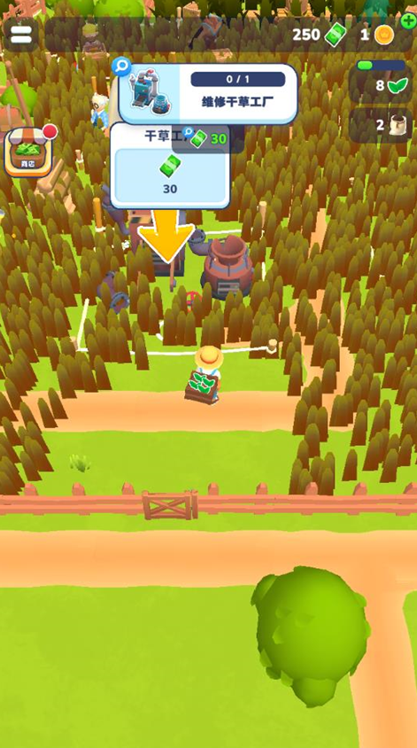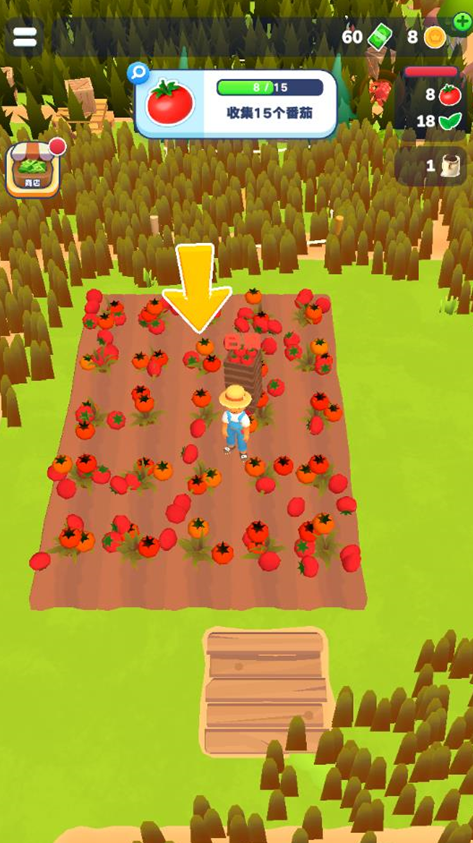 1、进入农场主快开荒中文版后,通过拖动屏幕移动角色,靠近树木等资源点即可进行采集。