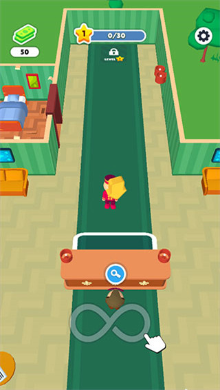 2、屏幕下方区域支持自由滑动,用来控制角色移动,进入游戏后可以先尝试接待第一位客人。