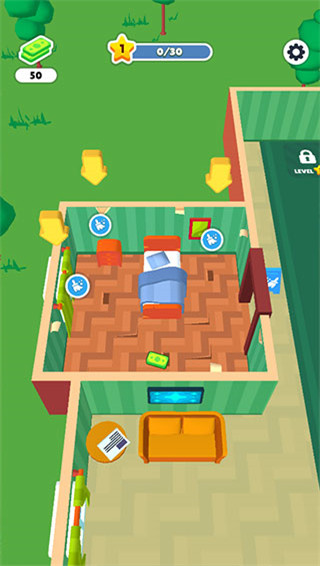 4、亲自参与客房改造流程,按照自身喜好装饰公共空间和客房,解锁更多互动玩法。