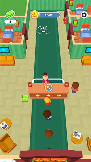 3、可以完成招募服务人员、装修升级店铺、扩展营业面积等操作,从零打造专属高端酒店。