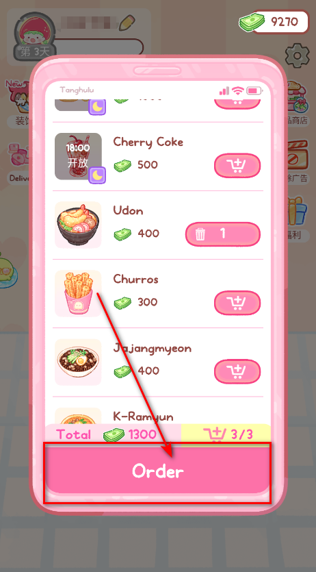 4. 玩家也可通过外卖功能点餐;