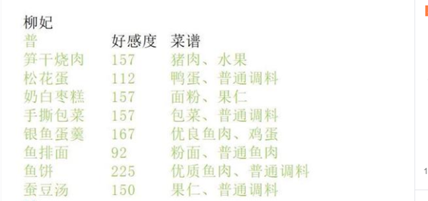 柳贵妃喜欢的菜谱有:普级:笋干烧肉、松花蛋、奶白枣糕、手撕白菜、银鱼蛋羹、鱼排面。