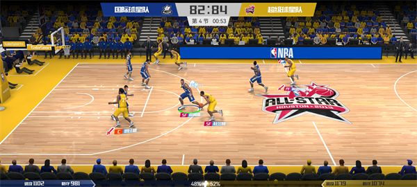 采用高清3D技术构建球场,细致还原了现场氛围与球员的标志性动作,例如库里的超远三分和奥尼尔的霸气扣篮,为玩家带来身临其境的比赛感受。