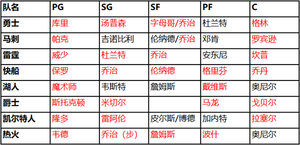 我们仅保留了五人阵容中至少包含三位大师球员的队套,湖人队因特殊性也予以保留,原因后续说明。接下来进行第二轮筛选。