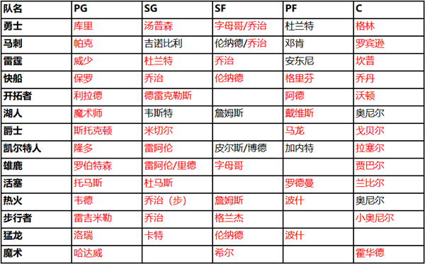 由于组合因素,我们移除了开拓者、雄鹿、活塞等队套。一个优秀的球队需要球员间有大量组合加成作为支撑,后面我们会重点分析湖人队。