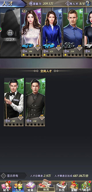 7、人才可配备一辆座驾与最多三位秘书,座驾与秘书均能提升人才能力。