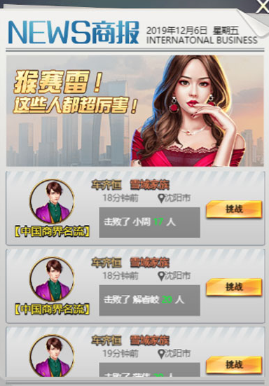5、商报:连续击败人才数达到或超过13人将登上商报,全服玩家均可挑战商报上的玩家。