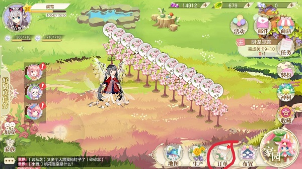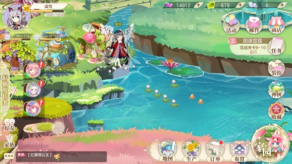 家园系统主要由生产、建筑与装饰三部分构成。生产环节包括花种种植与小屋加工,种植花朵可获得果实与经验,果实能在小屋中进行再加工;建筑部分则有百花满园、花仙驿站等设施,提交指定材料能换取丰富道具;装饰方面,玩家可通过工匠小屋获取图纸,或在种植商城购买装饰物来装扮自己的花园。家园中偶尔还会触发特殊的趣味任务。
