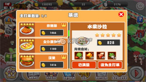 1、菜品反响、员工心情等情况都会带来金币奖励,成就系统清晰展示餐厅的经营状况;