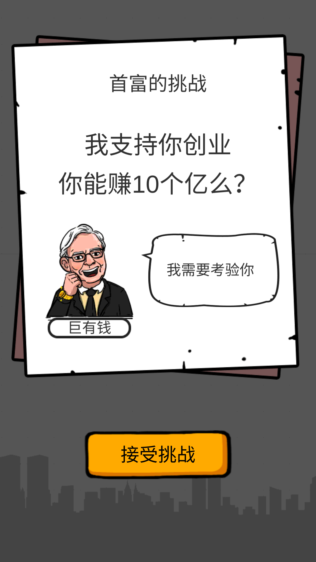 2、确认接受赚取10个亿的挑战任务。