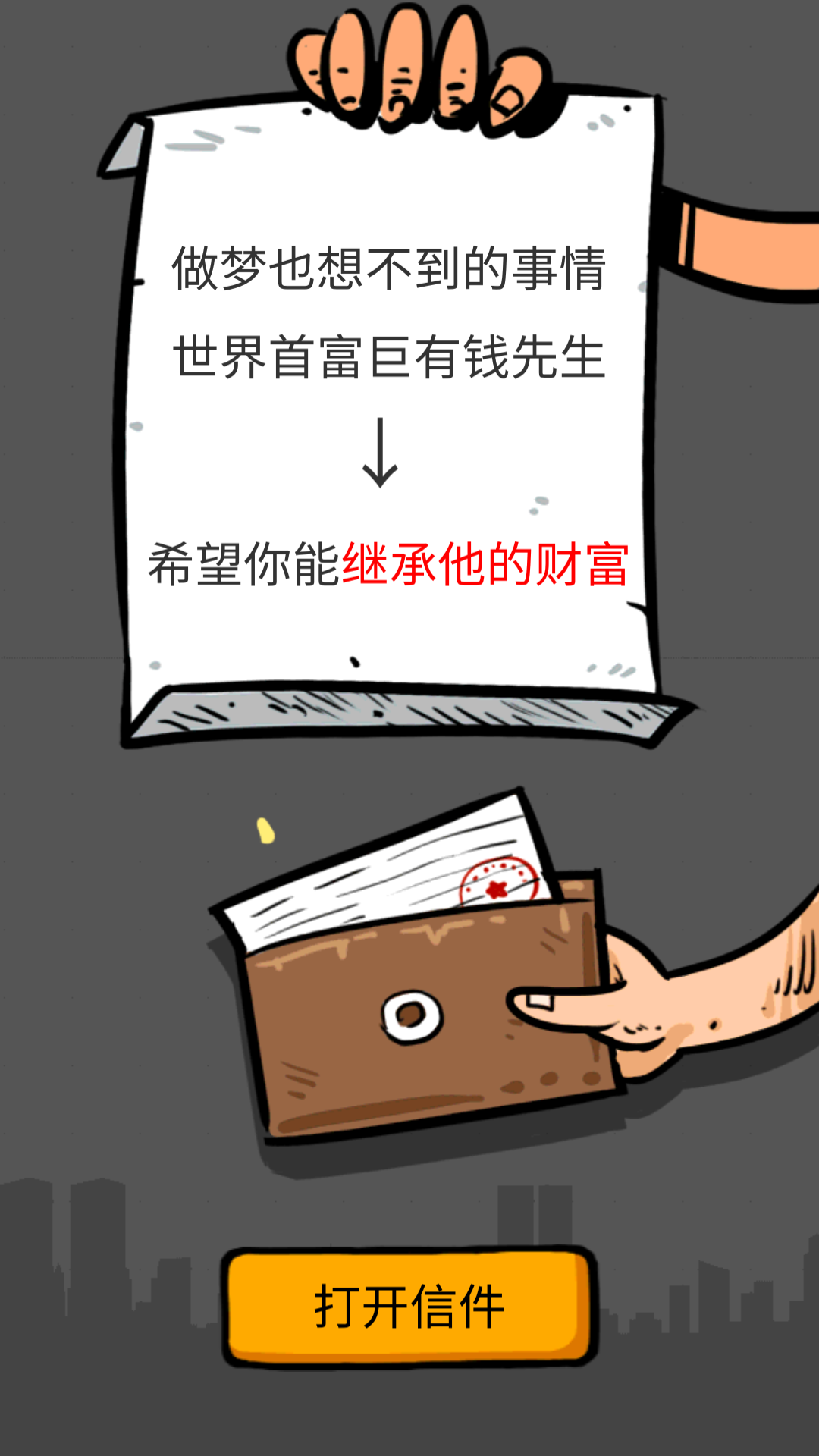 1、进入游戏后,先点开这封来自世界首富的信件。