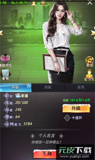 1、游戏包含员工、座驾、助理、房产等多种养成系统;