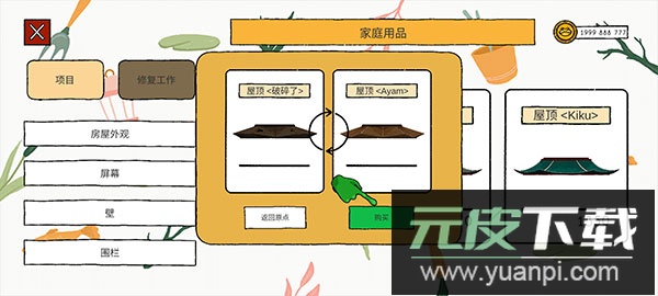 7、点击“修复工作”,在家居用品中挑选心仪的屋顶样式进行购买。