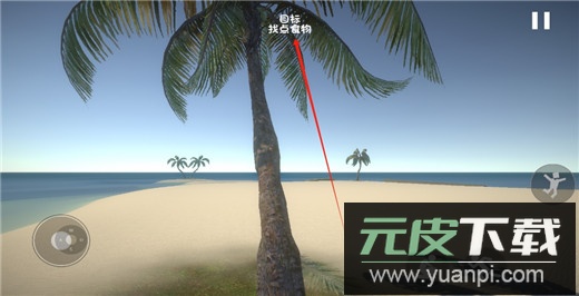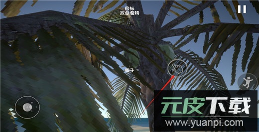 3、走到椰树下,将视角对准椰子并点击采摘;