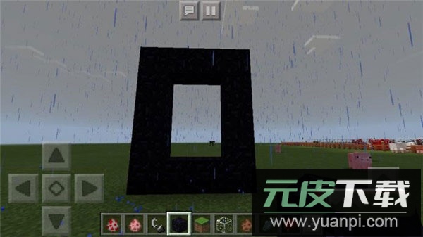 1. 首先寻找一片空地,使用黑曜石搭建一个内框宽2格、高3格的门形结构,整体大小为4x5;
