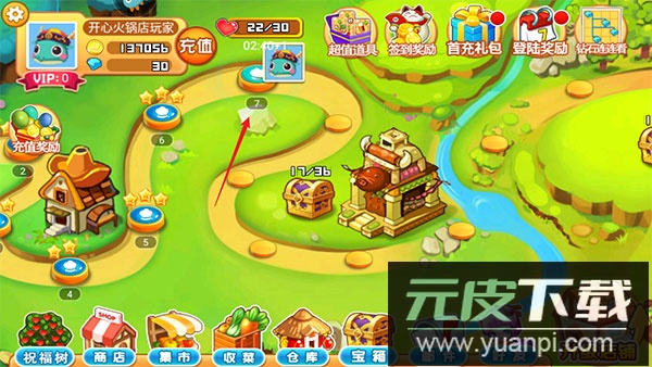 1、启动开心火锅店正版游戏,点击关卡开始按钮,消耗爱心进行闯关;