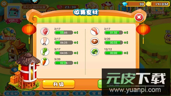 5、返回游戏主界面收集各类食材,用以补充库存;