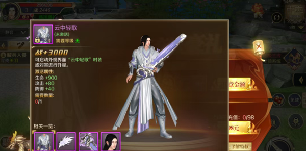 2、累充98元档:累计充值达到98元,可以领取一个紫色外观;首充礼包整体性价比良好,游戏前期建议参与。