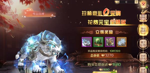 5、新区充值活动:每个充值档位的首次充值都会赠送额外元宝,该活动力度较大,深受玩家欢迎,能通过充值获取大量免费元宝。