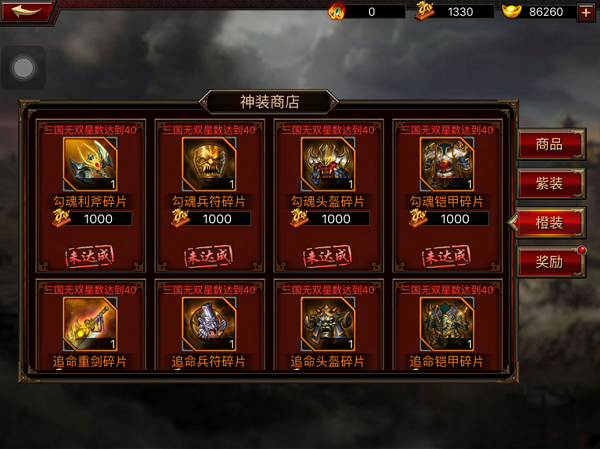 4、橙色与红色装备碎片,则主要集中在三国无双的神装商店内进行兑换。