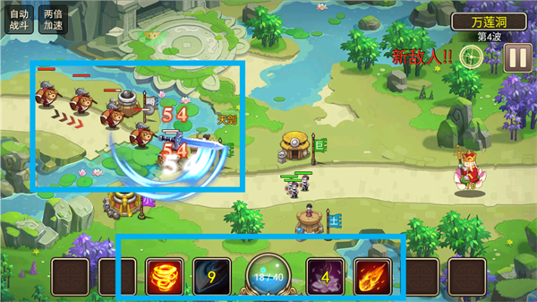 2、点击技能图标,在敌人行进路线上释放以造成伤害。