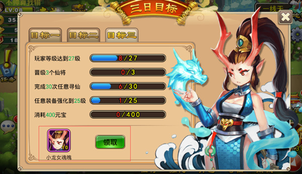 游戏主界面右下方设有寻仙入口,玩家可在此抽取仙将。使用不同颜色的寻仙令牌对应不同层级的招募:绿色令牌进行初级寻仙,每次获得两名仙将,有小概率得到真人或上仙;蓝色令牌进行中级寻仙,每次获得三名仙将,有概率获取上仙,较低概率获得神将;紫色令牌用于顶级寻仙,每次可获得六名仙将,有较高概率遇见上仙,并有几率获得神将,顶级寻仙在玩家等级达到15级或VIP等级达到3级后开启。玩家可根据自身情况选择招募方式,每日活跃任务及各类活动也会赠送寻仙令牌,三种令牌均会随时间恢复免费使用次数。