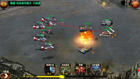 游戏内设有数十种特色鲜明的兵种,划分为装甲、飞行、步兵和建筑等类别。玩家需要根据它们各自的特点进行合理搭配,运用步坦协同、空中支援等战术手段,以最小损耗击溃敌人,从而赢得一场又一场的胜利。