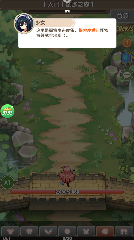 1、上方为探索进度条,充满后怪物首领便会登场。