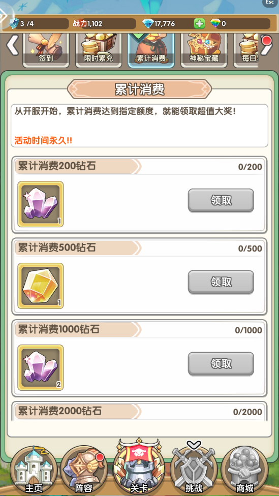 3、无需累充即可免费获取钻石奖励。