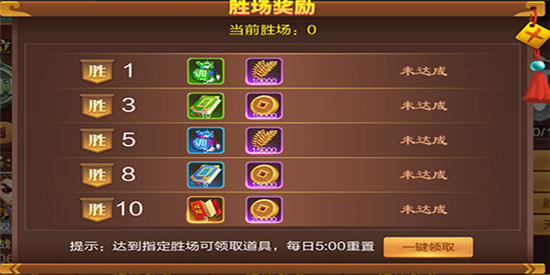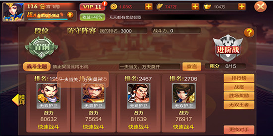 点击“点击挑战”按钮后,会弹出挑战布阵界面供你调整阵容,挑战胜利可以获取大量铜钱奖励。 每日累计胜利达到指定场数后,可领取对应胜场奖励,奖励每日5时重置。
