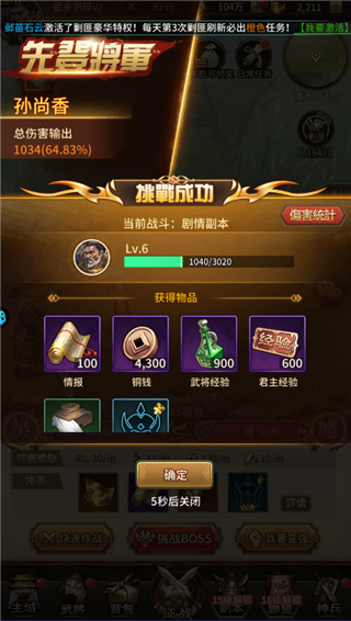 6、完成以上准备后即可前往征战副本,轻松击败各类boss获取奖励。