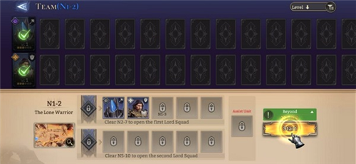 每场战斗可上阵的英雄数量有限,需要通过小队组建功能搭配出战阵容。领主小队最多可以配置五名英雄加一名辅助单位,所有位置不是初始就全部解锁的。