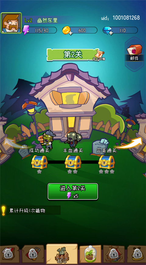 3、支持对植物进行升级,提升它们的基础属性,让后续的战斗过程更加轻松;