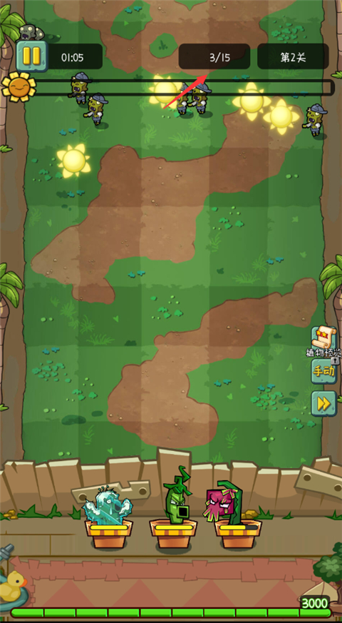 2、对抗僵尸的过程中获胜就能获取阳光,记得及时点击收取这些资源;