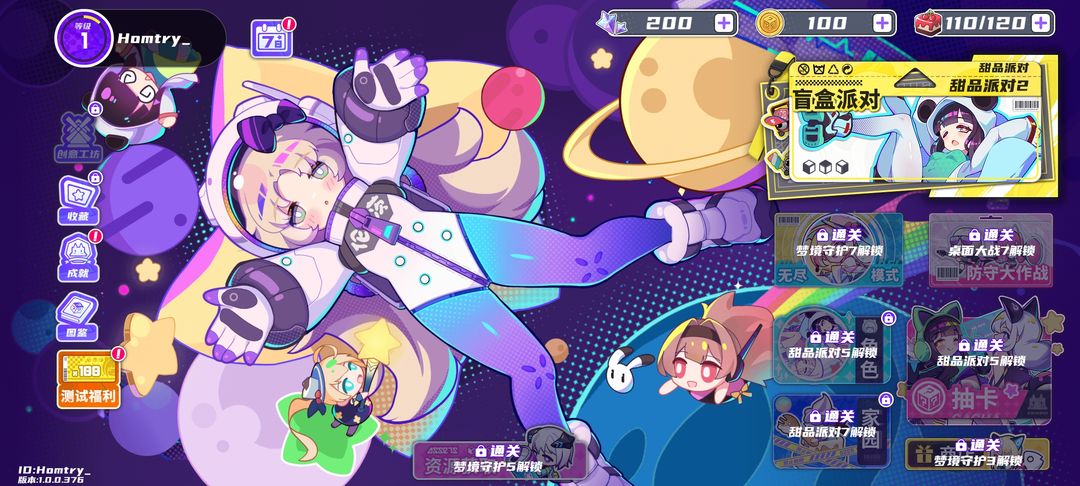 通过甜品5后,抽奖功能便开放了。别忘了领取主界面左下角的测试福利和左上角的每日签到,此时你拥有的资源应接近图3所示状态。