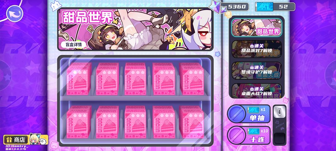 如图所示,抽卡功能需要在“甜品派对”简单难度第5关通关后解锁。因此首要目标是推进关卡至甜品5。