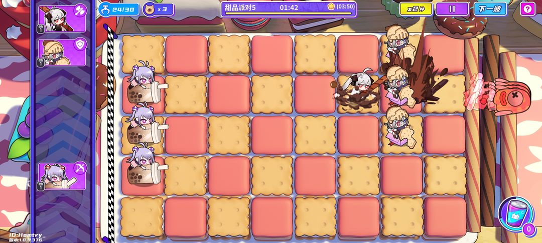 1、开局时注意调整敌人位置,尽量让首领盒子出现在后三排;避免其出现在前五排,否则可能没有足够空间部署甜品单位。