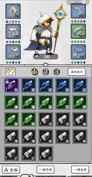 2、玩家可以自由搭配不同的技能和作战配置,灵活应对不同的史莱姆进攻波次;