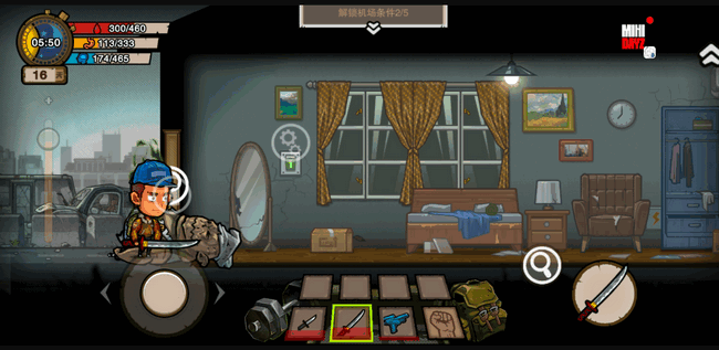 10、再次开局时,游戏会从机场关卡前开始。进入安全屋会提示解锁二楼新技能,该技能可用于主动挑战首领以获取特殊强化道具。在房屋附近停留数日,等待下一次百战机会进行存档,随后建造路障挑战机场。