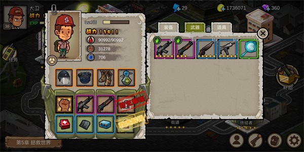 6、通关第五章第10关并扫荡橙色碎片:作为当前版本最终关卡,需要利用距离分批吸引僵尸逐个击破,避免一次性引来大量敌人。当首领处于屏幕外时,通常不会主动追击,巧妙利用此机制是过关关键。
