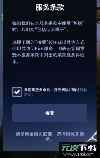 7、阅读服务器条款,需下拉至底部方可勾选同意;