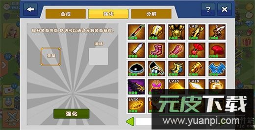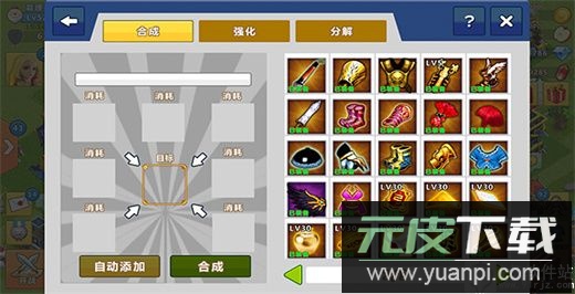 装备升级能显著增强英雄战力,主要通过强化与合成两种方式实现。强化需消耗铁块材料,且存在失败概率,通常建议低级装备直接强化;当装备等级达到10级以上,使用合成方式可更稳定地提升等级。