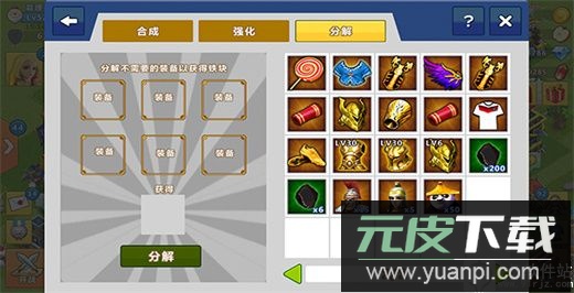 多余或淘汰的装备可通过分解转化为强化所需的铁块材料。